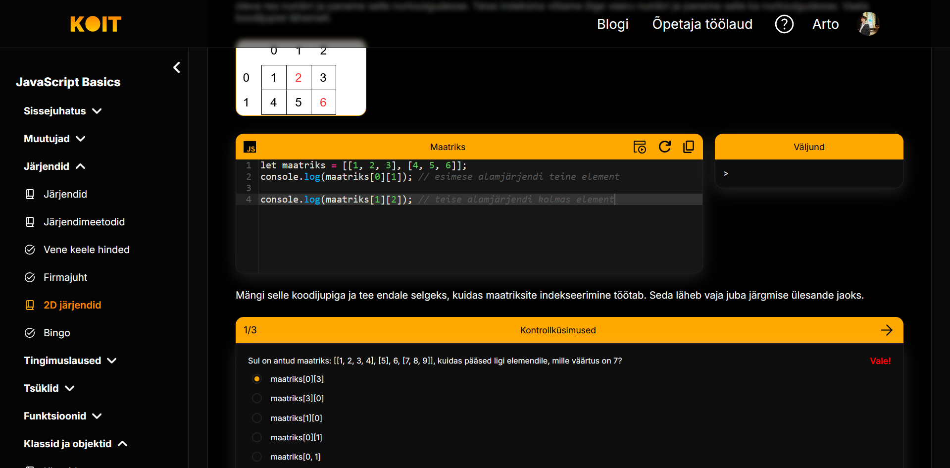 Järgmise peatüki juurde saab liikuda alles siis, kui on läbitud eelnev peatükk. Usume, et selline õppemetoodika on alustavatele õpilastele parim, sest teemasid vahele jättes võivad tekkida õpilüngad.